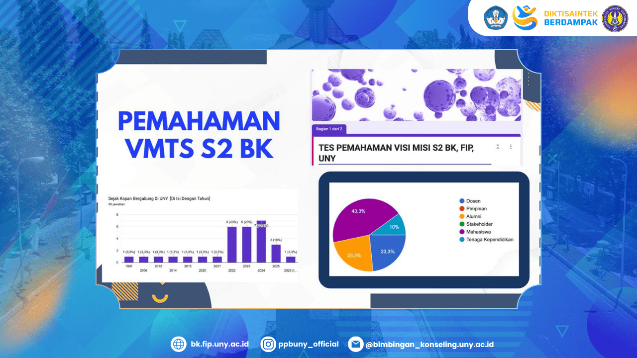 Post date: Friday, 13 December, 2024 - 13:51.Yogyakarta, December 30, 2024 — An annual survey conducted by the Master’s Program (S2) in Guidance and Counseling, Faculty of Education, Yogyakarta State University (UNY), indicates an excellent level of understanding of the program’s vision, mission, goals, and objectives (VMGO...
